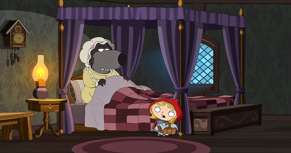 Caperucita llega a la casa de su abuelita, se extraña de su aspecto y pregunta...